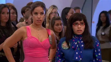 43min - Betty saa säikähtää halloweenina. Hän tulee naamiaisasussa Moden asukilpailuun, jota ei olekaan. Hän pähkäilee myös tunteitaan Henryä (Christopher Gorham, ”Jake 2.0”) kohtaan, mikä ärsyttää poikaystävä Walteria. Mikä pahinta, Betty joutuu jahtaamaan kelloa, jonka Daniel jätti jonkun tyttöystävänsä asuntoon (mutta kenen?). Daniel vierailee äitinsä luona (Judith Light) vieroituksessa. Wilhelmina kauhistuu – kroppa ei mahdukaan huippumekkoon!