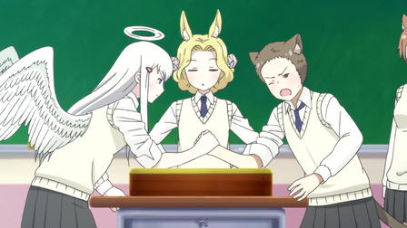 In a world where mythical creatures are the norm, a shy and sweet centaur girl named Himeno navigates high school alongside her diverse friends - a dragon-girl, a goat-girl, an angel, and a penguin, among others.ch