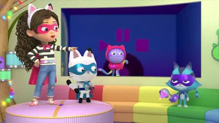 Join Gabby and her mischievous cat friends on a whimsical adventure through a magical dollhouse! With a little imagination and a lot of fun, Gabby and her stuffed animal sidekick Pandy Paws explore seven colorful rooms filled with quirky characters and exciting activities. From science experiments with MerCat in the bathroom to cooking lessons with Cakey in the kitchen, there's never a dull moment in this animated world. And at the end of each episode, learn a new skill with the 'Gabby Cat of the Day' segment! So put on your cat ears headband and get ready for some furry fun with Gabby's Dollhouse!
