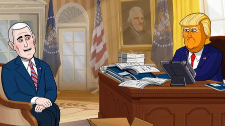 Get ready to laugh your way through the Trump presidency with "Our Cartoon President"! This cutting-edge comedy series brings you the "truish" adventures of Donald Trump and his merry band of insiders and family members, as they navigate the absurdities of Washington D.C. and the White House. With a hilarious cast of two-dimensional avatars, this show is not to be missed!