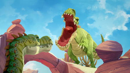 "Join Rocky, Bill, Tiny, and Mazu, four young dinosaur friends, as they explore a prehistoric world full of adventure and mystery. Along their journey, they encounter the biggest and fiercest dinosaur of all - Gigantosaurus. As they learn more about this massive creature, they discover that there's more to being a hero than just size and strength. With their unique skills and teamwork, they'll show you that even the smallest can make a big impact. Get ready for a roaring good time with Gigantosaurus!" This description highlights the main characters and their adventures, while also giving a nod to the titular dinosaur and the themes of teamwork and heroism that are likely present in the series. It also uses simple and compelling language that would be appealing to a general audience - children and adults alike - without revealing too much about the plot or the cast and crew.