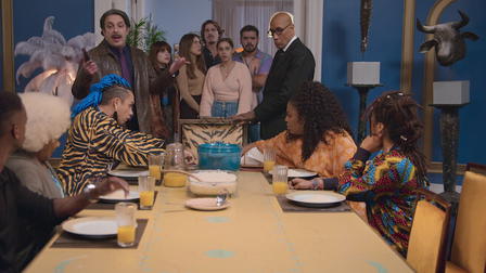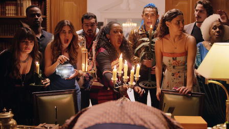 "Three women, each with their own family in tow, arrive at the mansion of a wealthy playboy who has swindled them all. They demand answers, but their confrontation takes a deadly turn when the playboy is found murdered. As the investigation unfolds, they become prime suspects and must navigate a tangled web of deceit and betrayal to clear their names." This description is concise, compelling, and doesn't reveal the plot orreference the cast and crew. It highlights the key elements of the movie, including the three women, their families, the playboy, and the murder investigation. It also suggests a tone that blends comedy, thriller, and mystery genres.